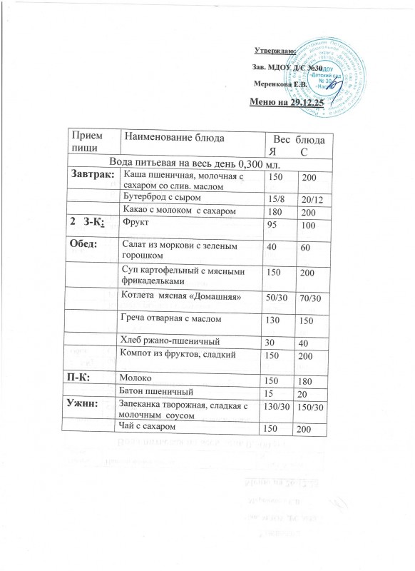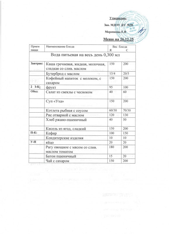 организация рационального питания основана на соблюдении утвержденных продуктов, утвержденного 10-ти дневного меню;
