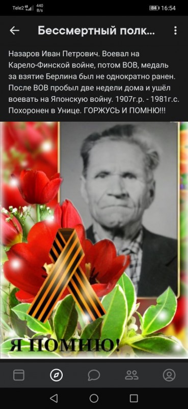 Назаров Иван Петрович. Прадедушка Лайдинен Екатерины, 1 группа