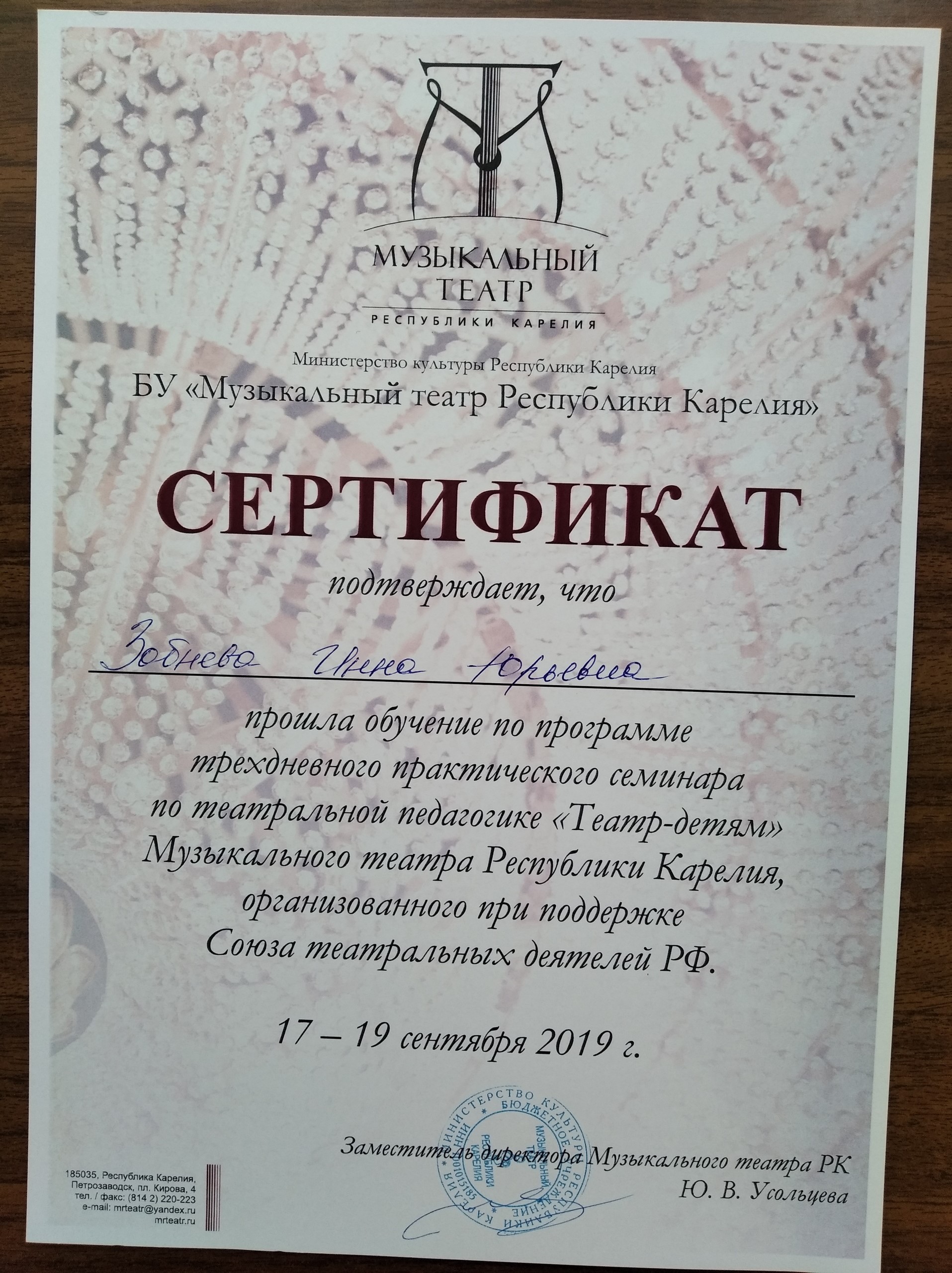 Зобнева Инна Юрьевна - музыкальный руководитель муниципального бюджетного дошкольного образовательного учреждения Петрозаводского городского округа «Детский сад № 30 «Насто» (МДОУ «Детский сад № 30 «Насто»).
